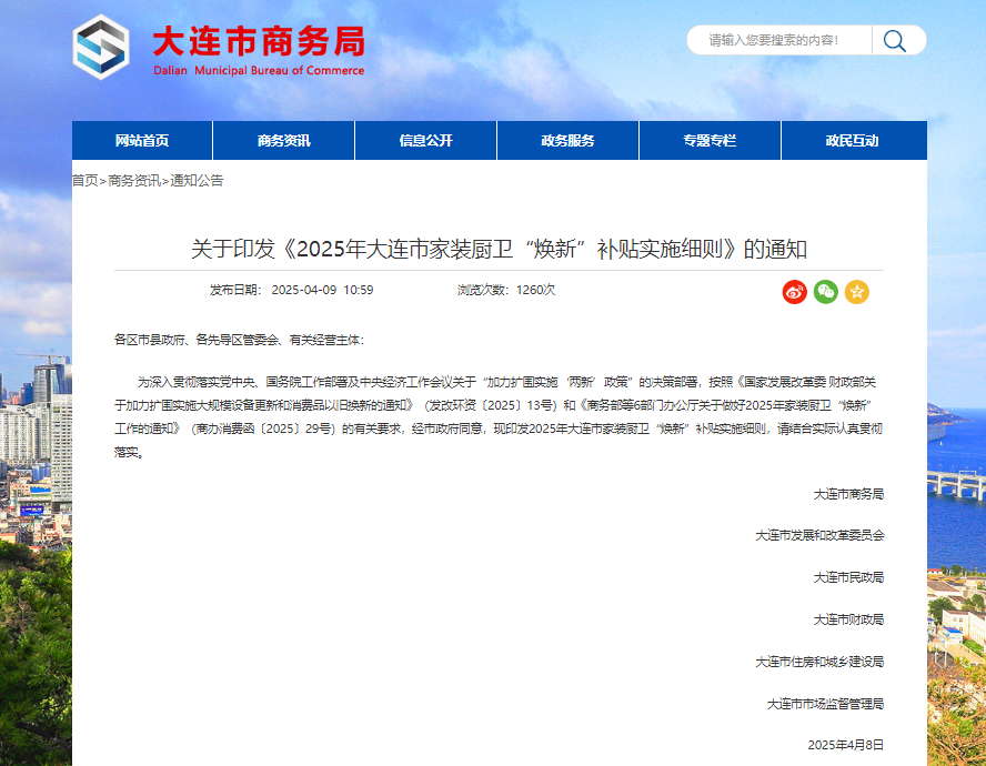 2025年大连市家装厨卫“焕新”补贴实施细则